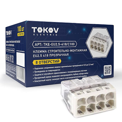 Клемма строительно-монтажная СМК 2273-208 EU2.5 418 8-проводная прозр. TOKOV ELECTRIC TKE-EU2.5-418/C100