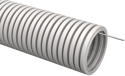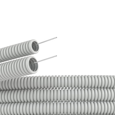 Труба гофрированная ПВХ легкая d25мм с протяжкой сер. (уп.20м) Ruvinil 12501(20)