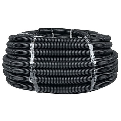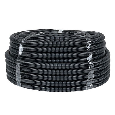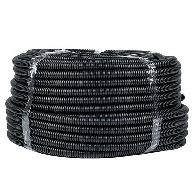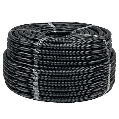 Труба гофрированная ПВХ d25мм с протяжкой черн. (уп.50м) Plast EKF tg-z-25-50-black