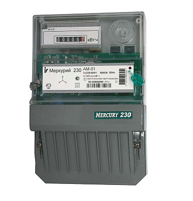 Счетчик Меркурий 230 AM-03 3ф 5-7.5А класс точн. 0.5S 1 тариф. импульс. вых. на панель мех. ОУ Инкотекс 00000032429
