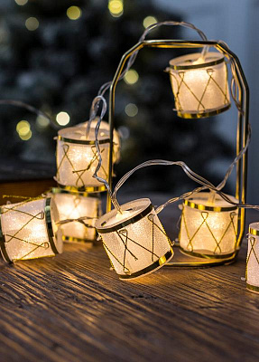Гирлянда светодиодная "Барабаны" pvc 5х4см 10LED тепл. бел. 1.8+0.3м КОСМОС KOC_GIR-B117