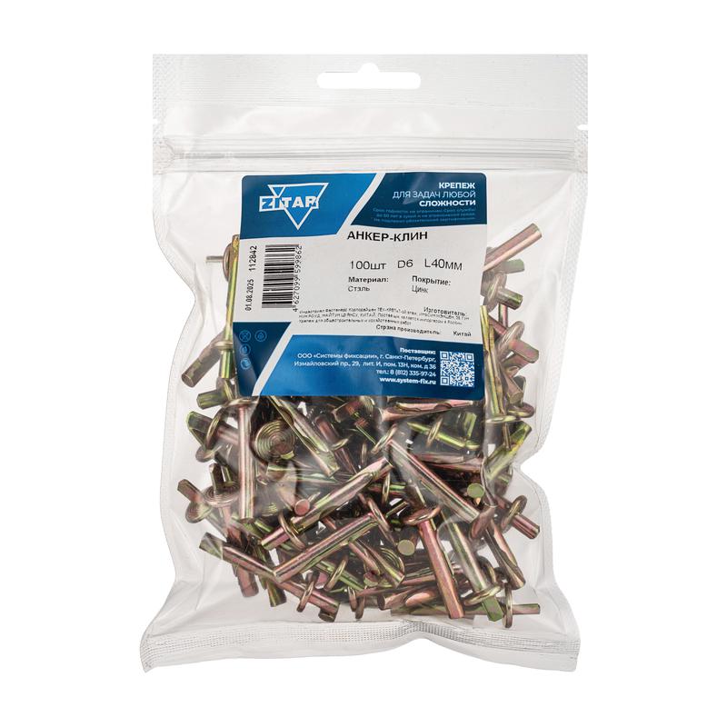 Анкер клиновой М6х40 (пакет) (уп.100шт) Tech-Krep/Zitar 112842 |