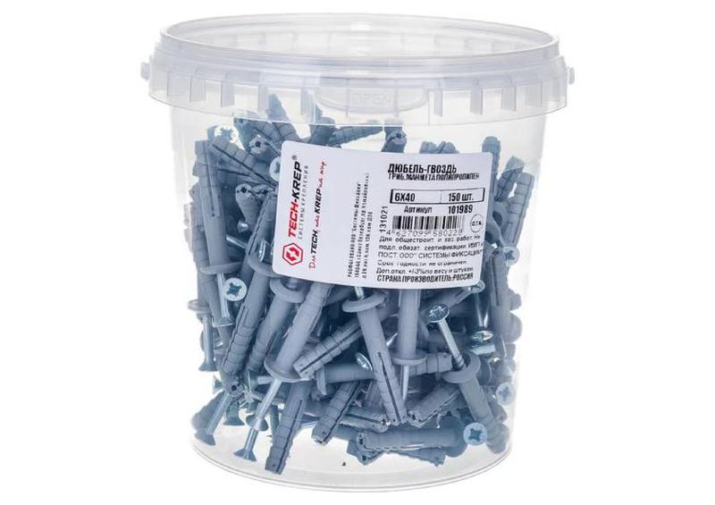 Дюбель-гвоздь 6х40 с грибовидной манжетой полипропилен (уп.150шт) ведро Tech-Krep 101989 |