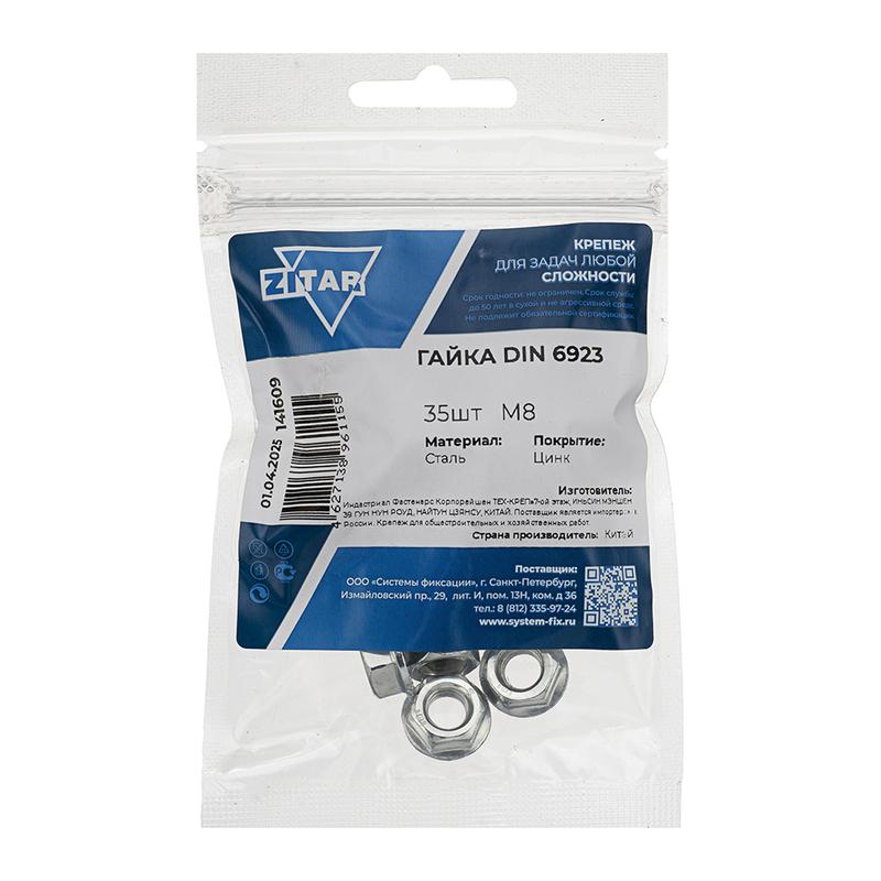 Гайка шестигранная с фланцем М8 DIN 6923 цинк. (пакет) (уп.35шт) Tech-Krep/Zitar 141609