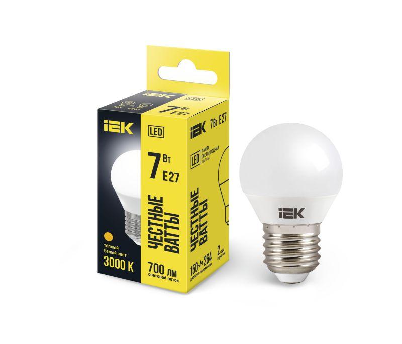 Лампа светодиодная G45 7Вт шар 3000К тепл. бел. E27 630лм 230-240В IEK LLE-G45-7-230-30-E27