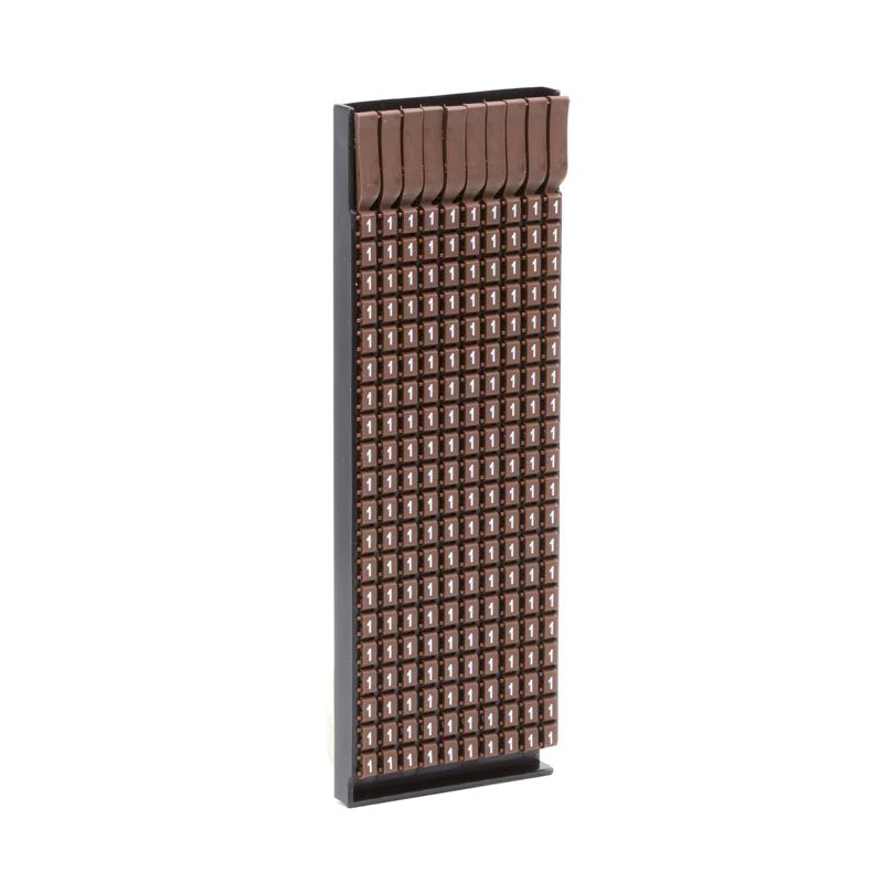 Ручная маркировка системы MARK 3 для маркировки проводов без разъединения электрической цепи из полиамида 6.6. Температура эксплуатации от –40 до +100 °С. Боковые штифты надежно фиксируют соединение друг с другом и позволяют добиться точного выравнивания маркеров. Цвет маркеров соответствует международной кодировке. Символ "1" белым цветом на коричневом маркере для сечения провода 0.5-1.5 мм2. 200 маркеров в упаковке.