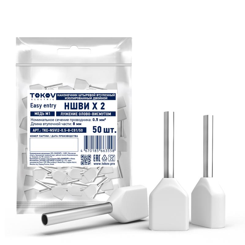 Наконечник штыревой втулочный изолированный двойн. НШВИ(2) 0.5-8 TOKOV ELECTRIC TKE-NSVI2-0.5-8-C01/50 |