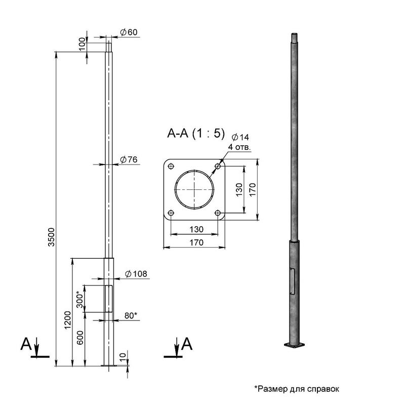 Опора ОП1ф-3.5-108/76/т60-(К170-130-4х14)-по 9005 муар Пересвет В00007135 |