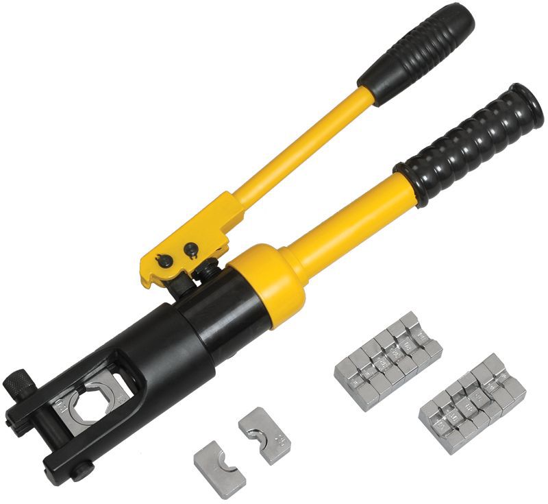 Гидравлические прессы позволяют создавать механические соединения типа кабельная жила-гильза или кабельная жила-наконечник с помощью механической опрессовки. Прессы снабжены сменными матрицами, предназначенными для различных сечений жил.