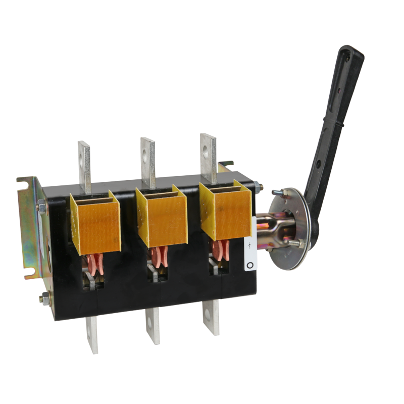 Выключатель-разъединитель 3 полюсный на номинальный ток 630 А, в котором установлена съемная рукоятка.