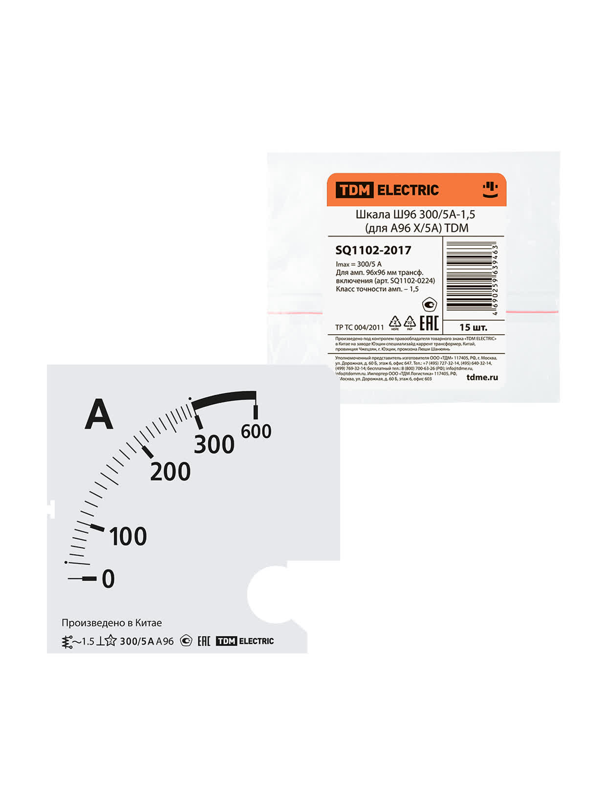 Шкала Ш96 300/5А-1,5 (для А96 Х/5А) TDM SQ1102-2017 |