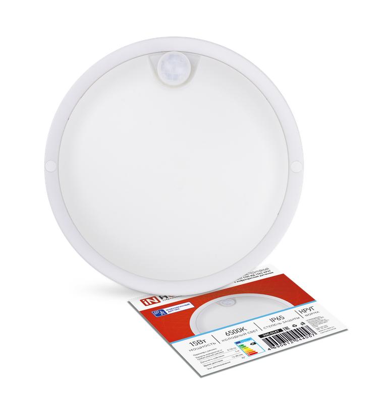 Светильник светодиодный СПП ИД-1565-КРУГ 15Вт 6500К IP65 1350лм 140мм герметичный с инфракрасным датчиком IN HOME 4690612044057