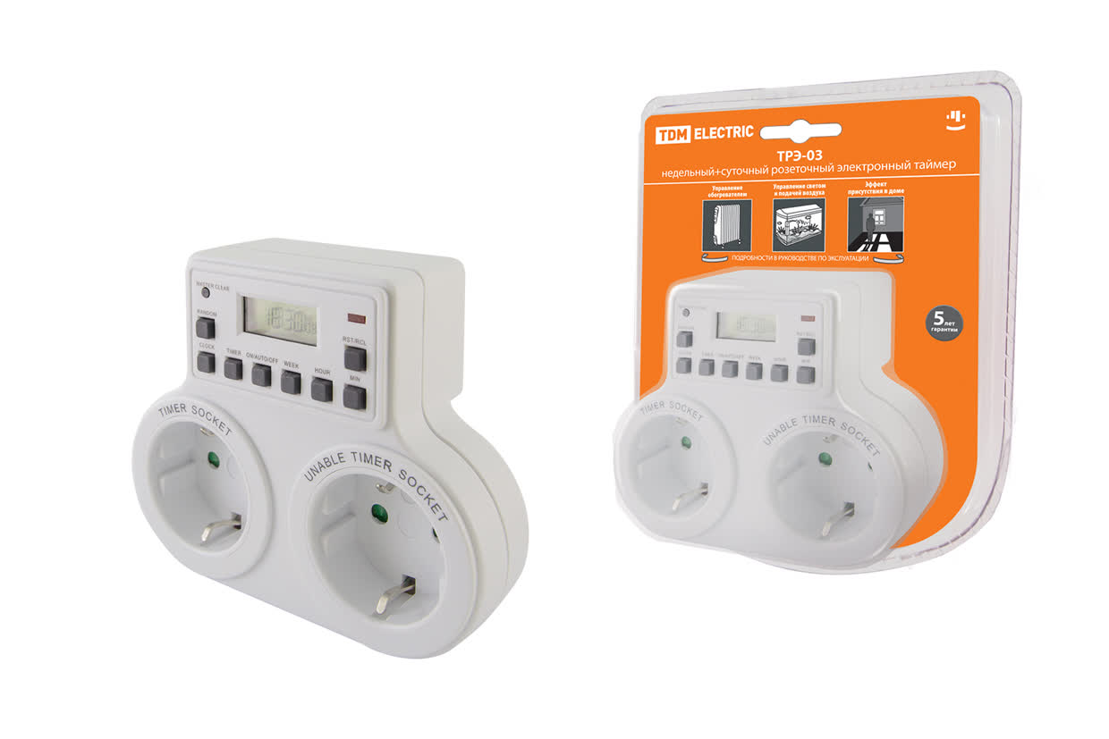 Таймер розеточный электронный ТРЭ-03 1мин/7дн 10on/off 2х8А, 2 розетки TDM SQ1506-0006
