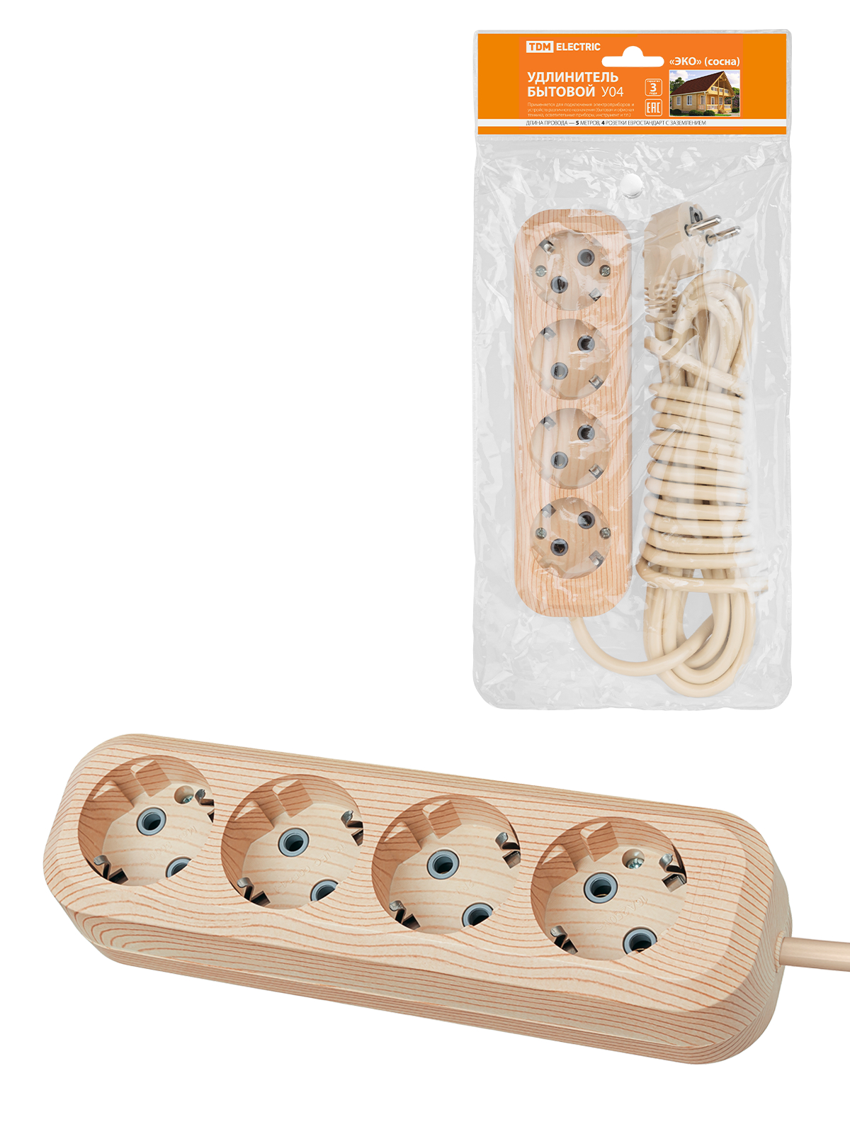 Удлинитель бытовой У04 (4 гнезда, 5 метров, 2П+3, ПВС 3х1мм) 16А/250В TDM SQ1303-2012