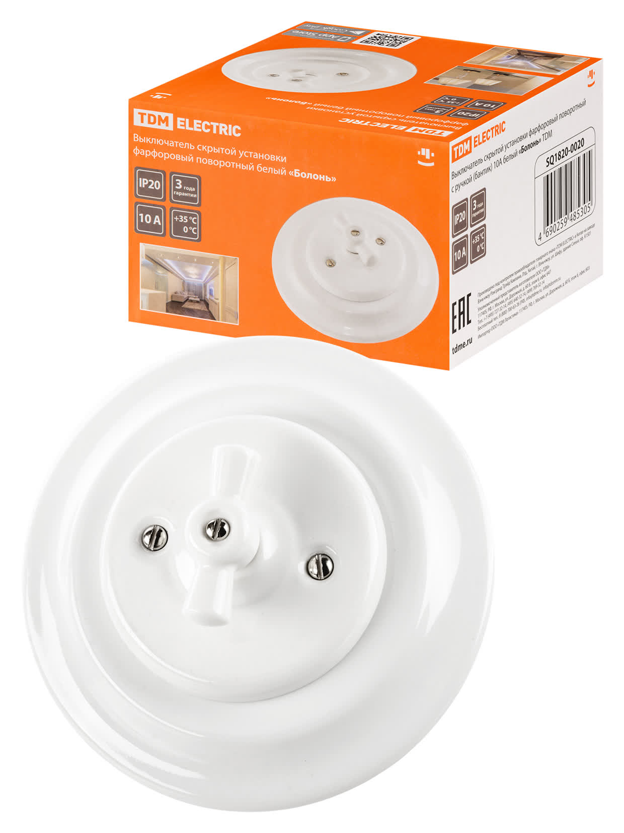 Выключатель скрытой установки фарфоровый поворотный с ручкой (бантик) 10А белый TDM SQ1820-0020