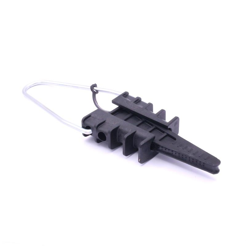 Зажим анкерный клиновой обеспечивает фиксацию проводника путем срабатывания простого призматического механизма, рабочие поверхности которого сходятся под острым углом. На опоре ЛЭП зажим фиксируется с помощью тросика.